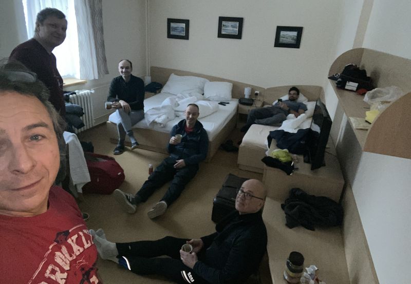 Sobotní snídaně se zúčastnili všichni 4 závodníci a jejich servisní tým, rovněž