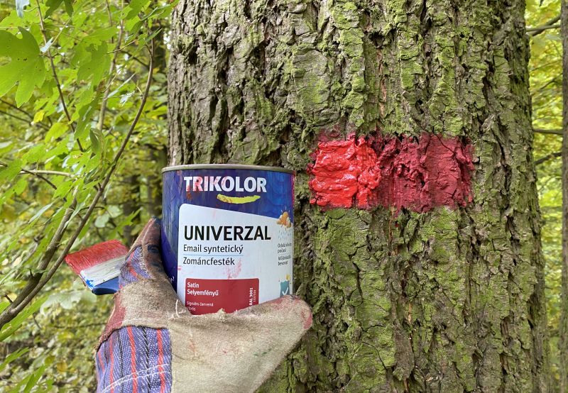 odhadem 1,6 km a nakonec trať nová, tříkilometrová, signálně červenou označena